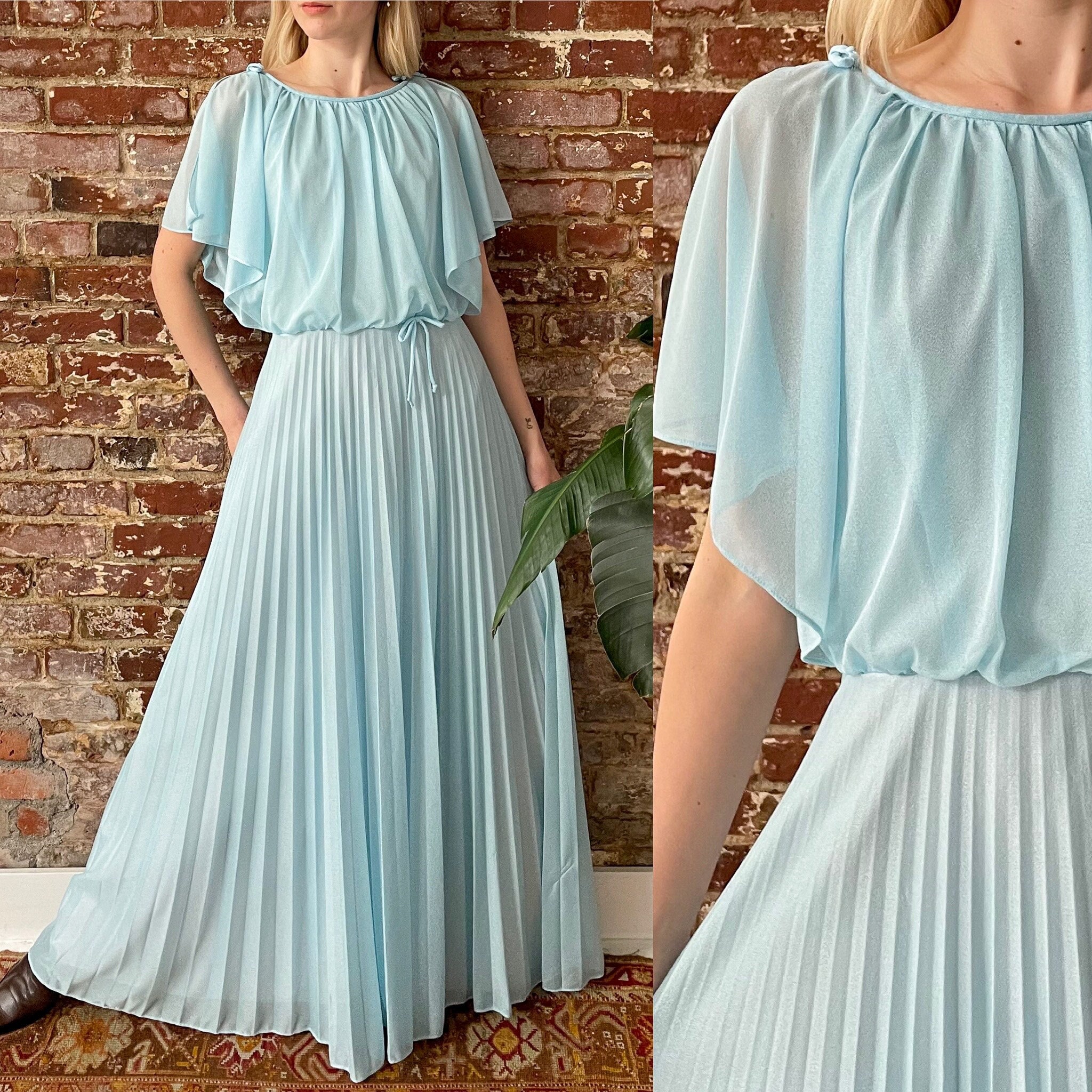 Vintage 1970s Accordion Pleated Flutter Sleeve Maxi Dress Etsy De